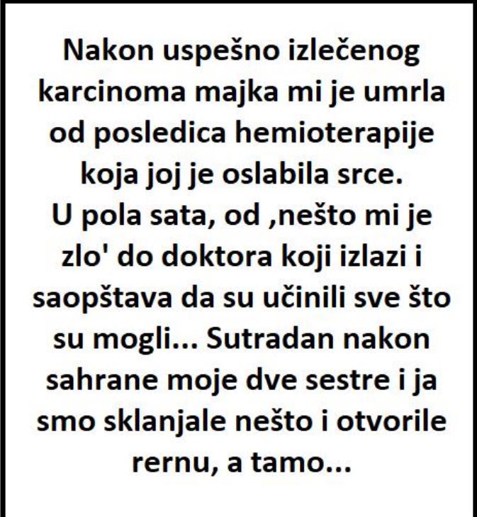 Sjećam se trenutka kada smo saznali tužnu vijest. Njene posljednje riječi bile su jednostavne, ali su nosile težinu neizmjerne tuge: “Nešto mi nije dobro.” Dok je ljekar izlazio iz njene sobe, njegov izraz lica govorio je više od riječi. “Učinili smo sve što smo mogli…” Ove riječi su mi zauvijek ostale u sjećanju. U tom trenutku, osjetila sam da se svet oko mene srušava. Nestali su naši svakodnevni razgovori, smijeh i majčinski savjeti koji su nas uvijek pratili. Naša sigurnost i osjećaj doma nestali su u trenu. No, gubitak nije bio samo emocionalni. On je imao i fizičke manifestacije; osjećala sam kao da mi je dio tijela oduzet, a praznina koja je ostala bila je bolna i neizdrživa.