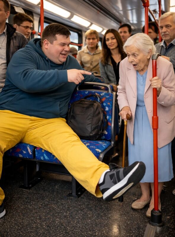 Kada su se vrata autobusa otvorila na jednoj od stanica, unutra je ušla starija žena. Njezina sporost i upotreba štapa jasno su govorili da joj je potrebna pomoć. Cijeli autobus je na trenutak obratio pažnju na nju, ali ubrzo su se svi vratili svojim telefonima, ignorirajući njen poziv za poštovanjem. Nažalost, ni jedan putnik nije ustao da joj ponudi mjesto, a situacija je dodatno pogoršana kada je primijetila mladića koji je s nogom ispruženom na susjedno sjedište zauzimao prostor koji nije pripadao njemu. Ovaj mladić, koji je izgledao kao da je potpuno nezainteresovan za sve oko sebe, i dalje se ponašao kao da je autobus njegovo privatno vlasništvo.